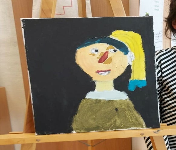 In mijn groep 5 hebben de kinderen een schilder gekozen en hier een werkstuk over gemaakt. Daarnaast hebben de kinderen hun lievelingsschilderij van deze schilder gekozen. Eerst hebben de kinderen hier een schets van gemaakt. Ze moesten vooral de basislijnen tekenen en oefenen met de grote van de figuren op het schilderij. Kleuren kwamen hier nog niet aan te pas.