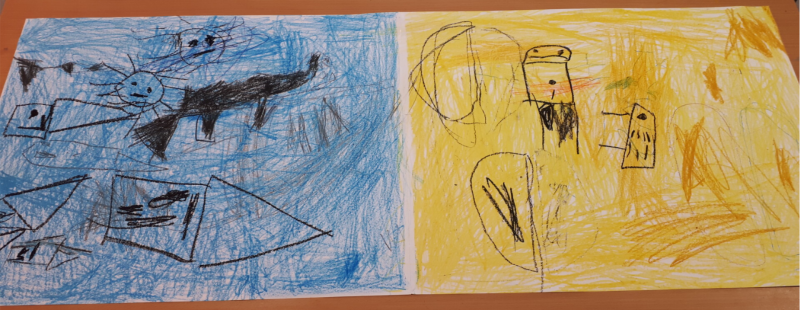 voor de zandtafel. De kinderen kunnen waterdieren natekenen,