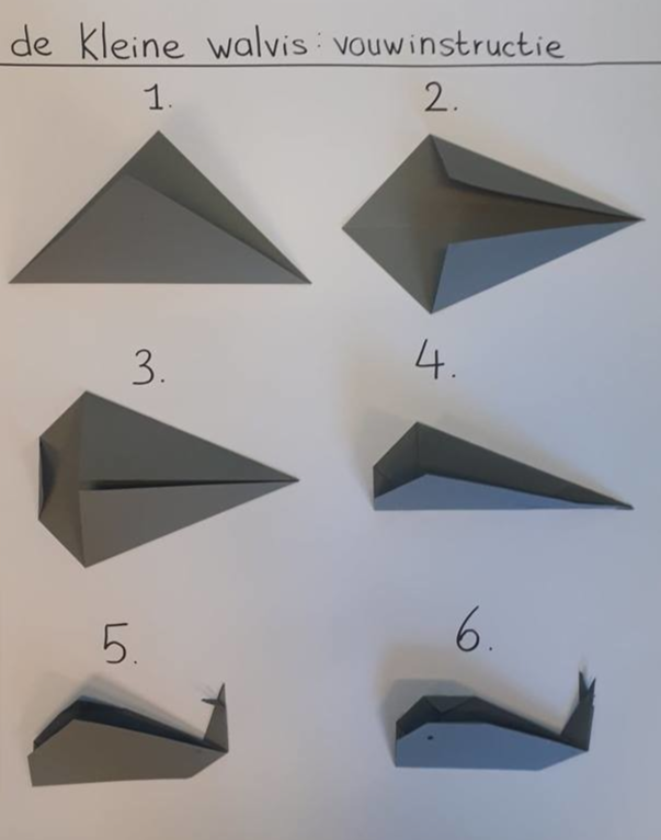 staan hoe de walvis gevouwen moet worden. Deze kun je
