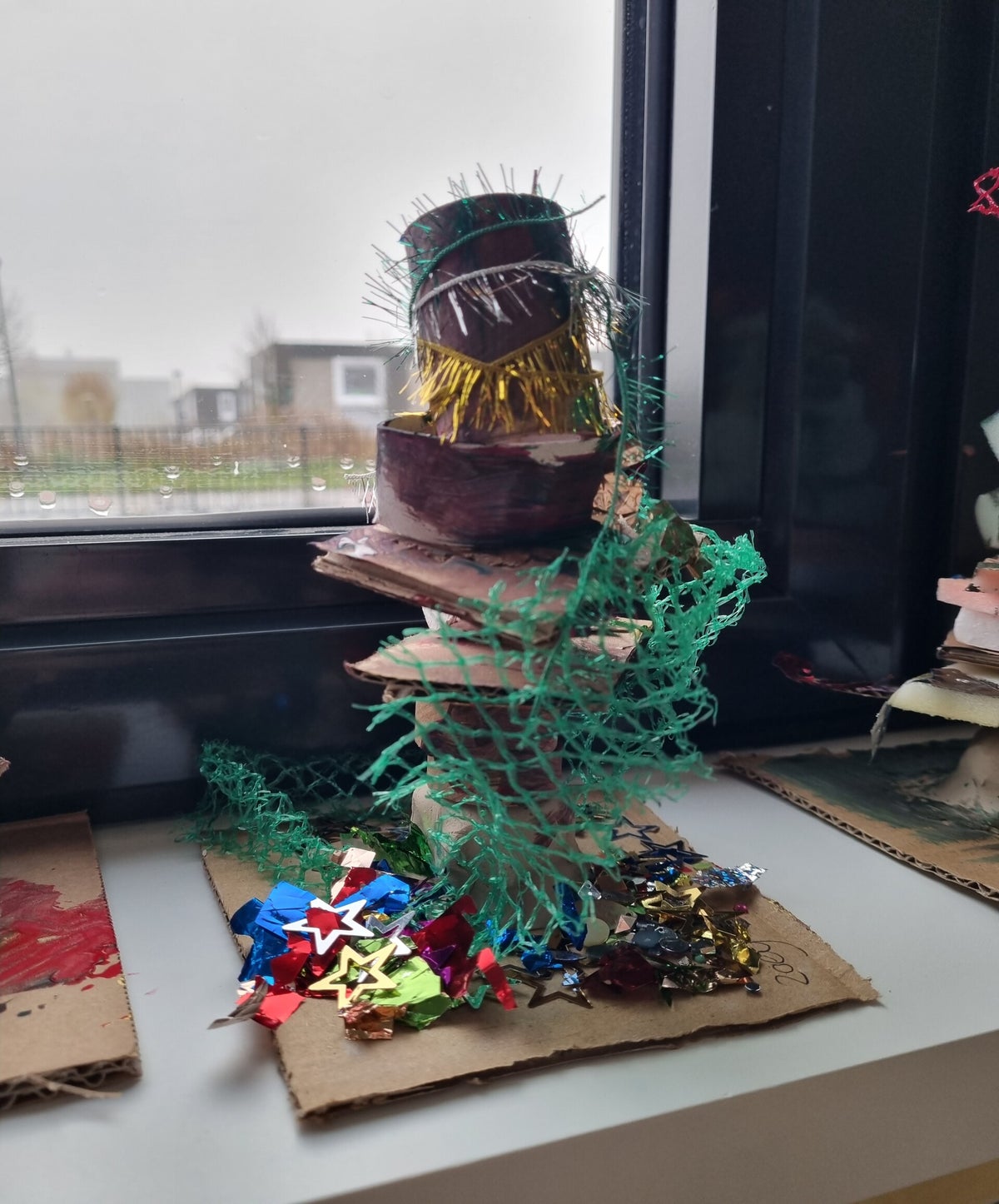 Kerstbomen op deze manier maken prikkelt de creativiteit van de kinderen enorm. Alle