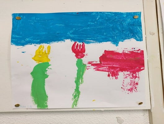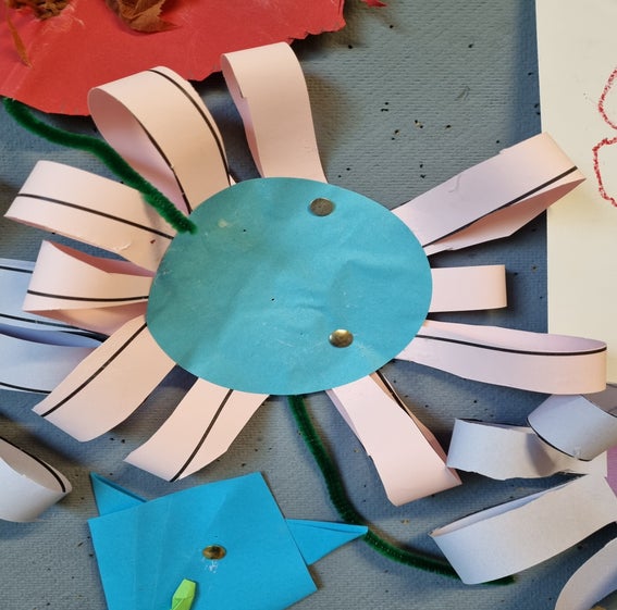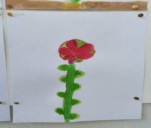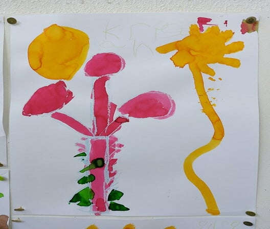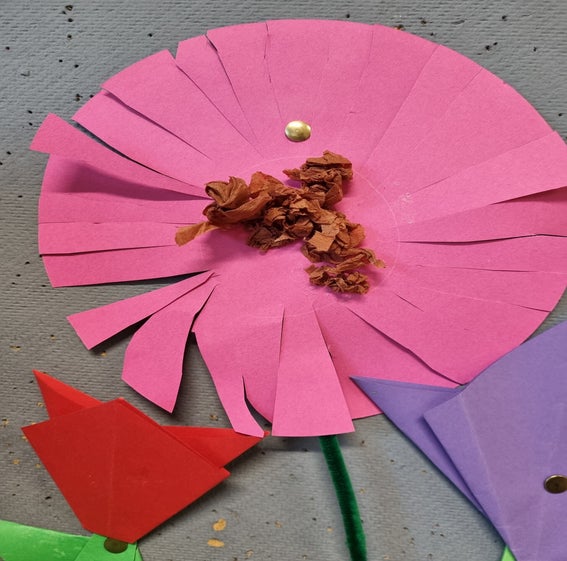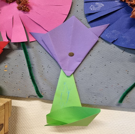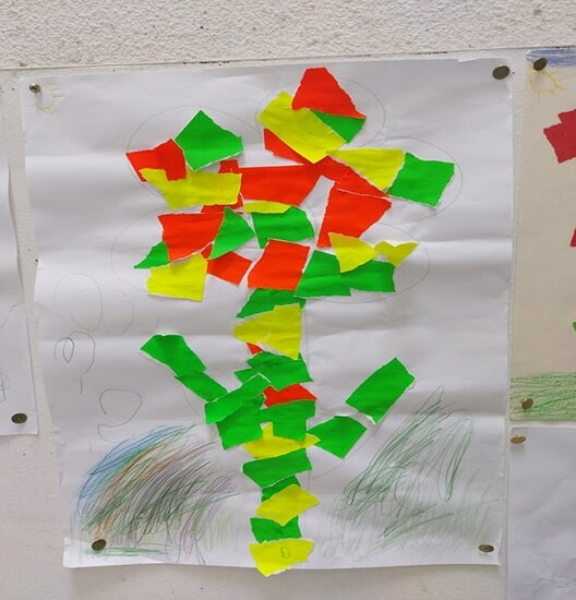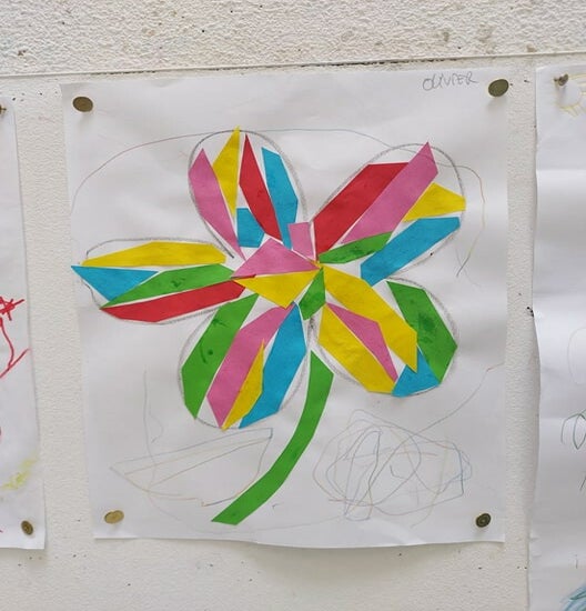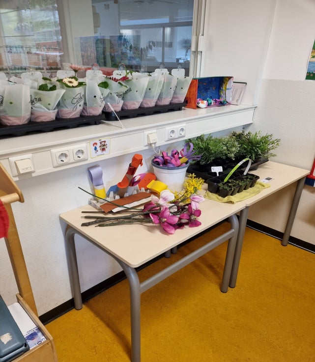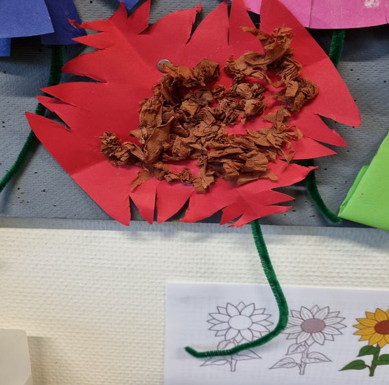 plakken de kinderen een bloem. Simpel, maar een mooi resultaat.