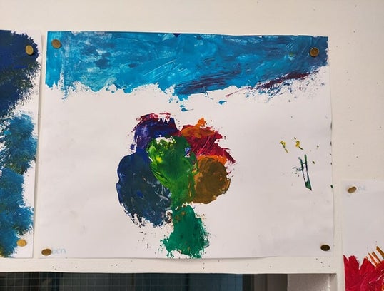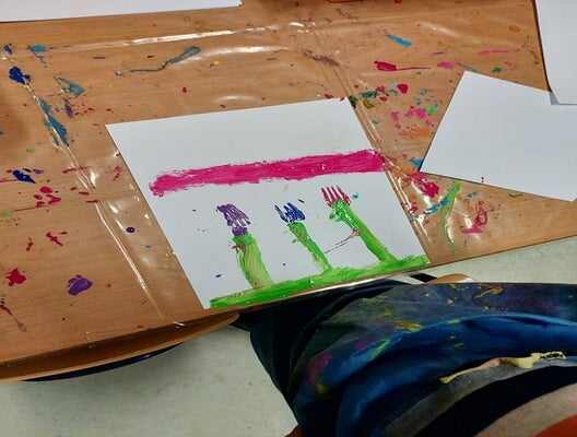 nodig. De kinderen dopen een vork in de kleur verf die ze willen (of verven met een