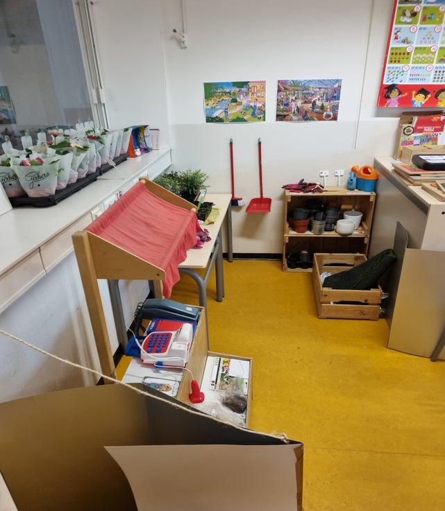 Deze thematafel komt uit de 'Coronatijd', waardoor er geen meegenomen spullen van thuis op de thematafel liggen. Er jammer... Normaal is dat natuurlijk een van de leukste dingen. Het enthousiasme vanuit thuis. Maar ook op school kan je verschillende dingen maken en zoeken die de thematafel kunnen vullen!
