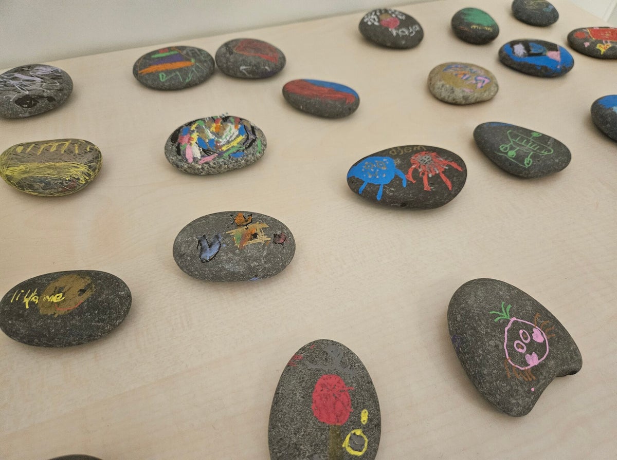 natekenen. Als de steen mooi gevonden wordt, krijgt de steen een plekje in het museum