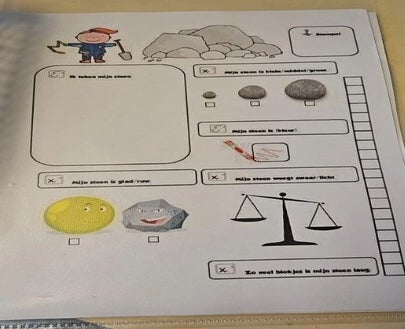 daarna onderzoeken met vergrootglazen, een balansweegschaal en ze kunnen de steen